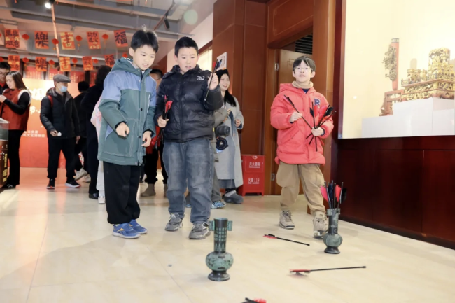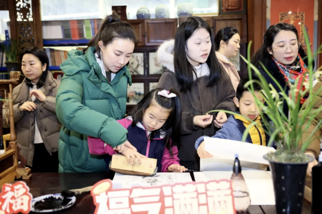 民俗体验现场,两岸同胞一起写福字、拓年画、剪窗花、投壶嬉戏,在非遗手作中寄托祝福,于传统雅趣中交融情感。