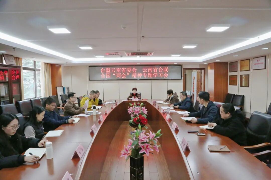 3月13日,台盟云南省委会、云南省台联机关召开全国两会精神专题学习会。台盟云南省委会主委、云南省台联会长杨晓红主持会议并讲话。台盟云南省委会副主委高素芳、李志强,云南省台联秘书长胡恒富参加会议。