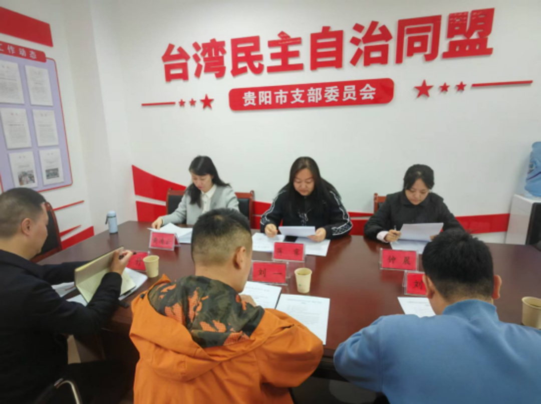 3月23日,台盟贵阳市支部组织召开专题学习会,传达学习全国两会精神和台盟十一届十七次中常会精神。台盟贵阳市支部主委蒋霁主持会议,支部委员、骨干盟员等参加会议。