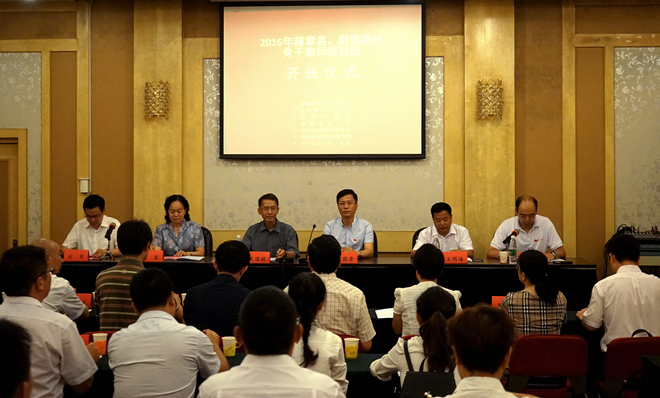 7月18日,台盟中央社会服务部、北京青年政治学院(北京市团校)、台盟北京市委共同举办的2016年赫章县、黔西南州骨干教师培训班在北京开班,赫章县、黔西南州共40名骨干教师参加本次培训。全国政协常委、台盟中央副主席吴国祯,北京青年政治学院(北京市团校)党委书记楚国清,全国政协委员、台盟中央社会服务部副部长蔡国斌,全国人大代表、台盟北京市委常务副主委陈军,北京青年政治学院(北京市团校)党委副书记高世英,台盟北京市委副秘书长陈伟,中共中央统战部办公厅社会服务处调研员王明海,北京青年政治学院(北京市团校)培训中心主任曾宇宏,中共赫章县委副书记、统战部部长刘军,黔西南州政府副秘书长、中共黔西南州委统战部常务副部长蒋静等出席。
