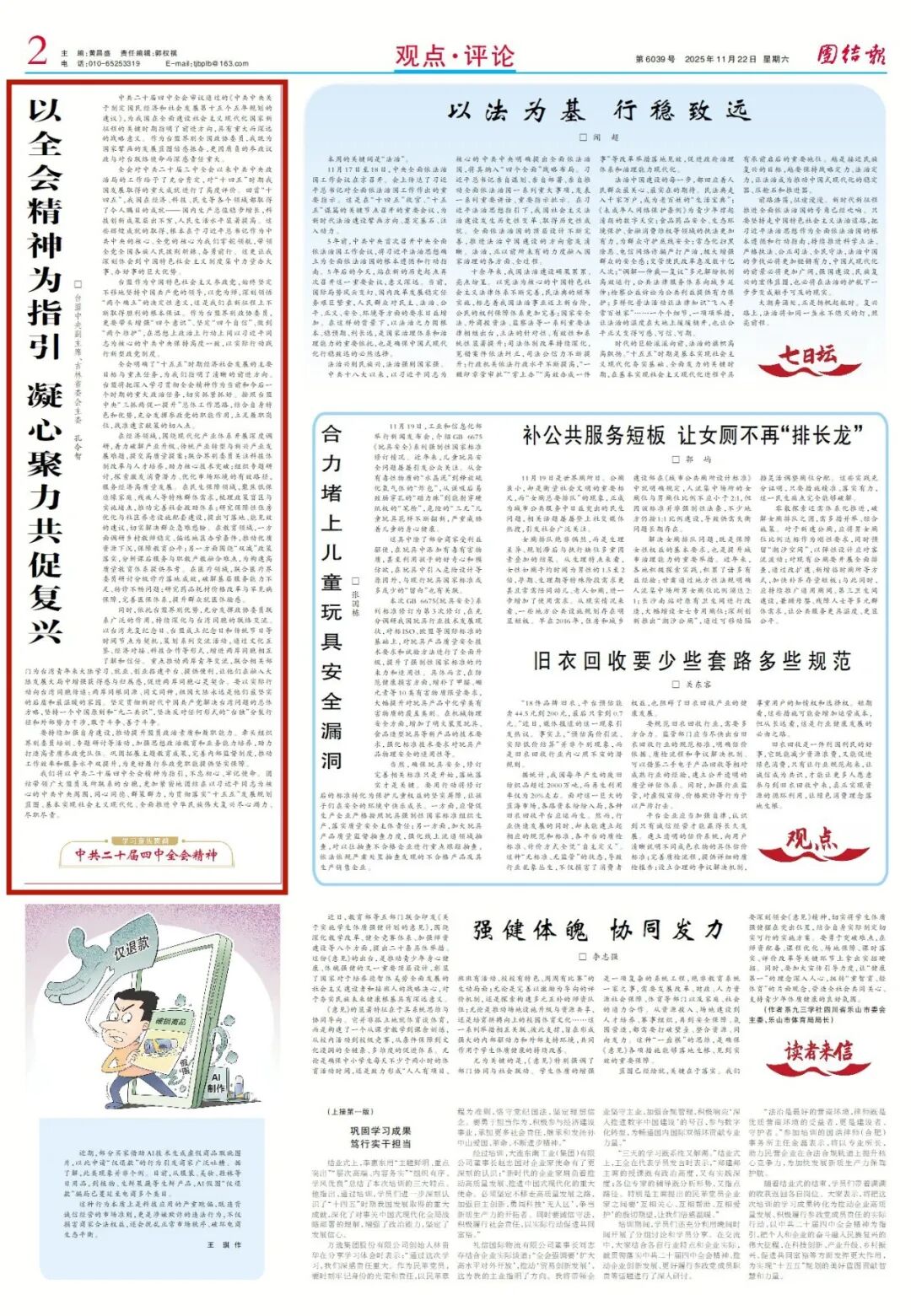 团结报2025年11月22日刊发台盟中央副主席、吉林省委会主委孔令智的署名文章。