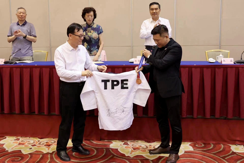 开营式上,李东宪还向台盟中央捐出在亚太大师运动会的授奖服与奖牌,希望更多台湾运动员可以突破心里的障碍,勇于认同自己的祖国,共同融入中国式现代化进程,共享中华民族伟大复兴的荣誉与骄傲。