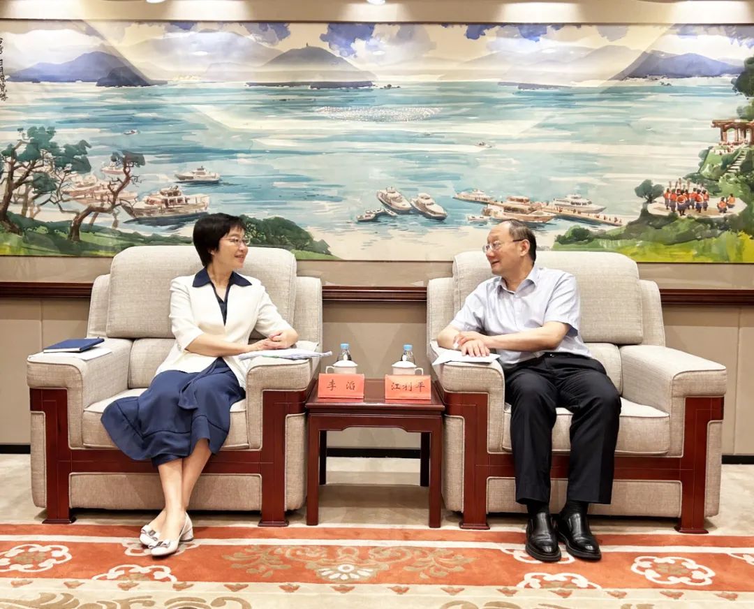 7月16日,全国政协常委、台盟中央副主席兼秘书长江利平会见国家医疗保障局党组成员、副局长李滔一行,就台盟中央提交全国政协十四届二次会议的《关于推动我国长期护理保险全面实施的提案》《关于优化农村地区居民基本医疗保险收缴工作的提案》等2件提案办理情况进行协商交流。