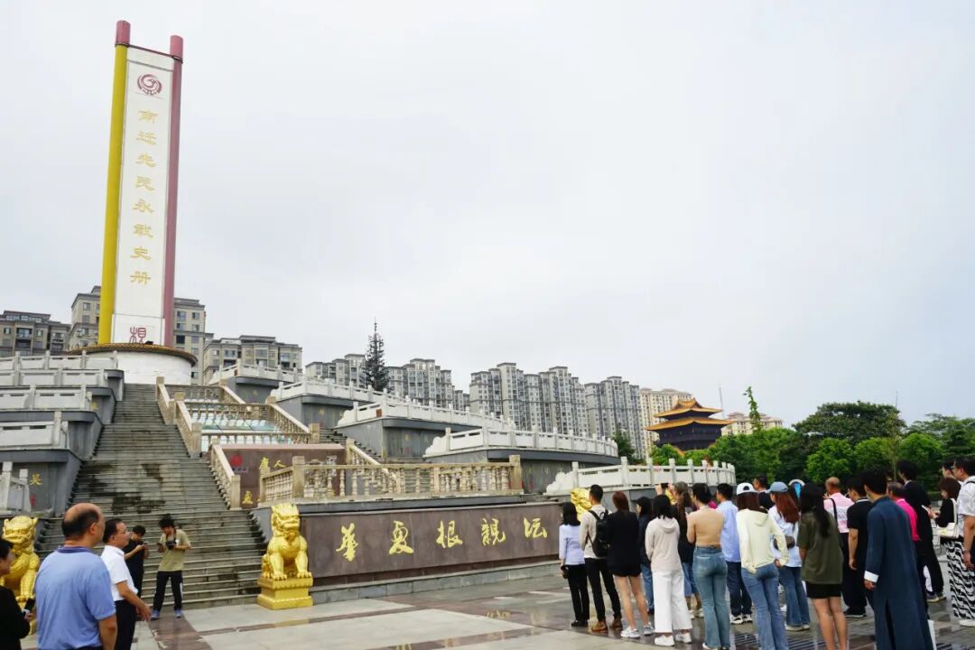 参访团在华夏根亲坛前驻足拜谒(台盟中央宣传部供图)