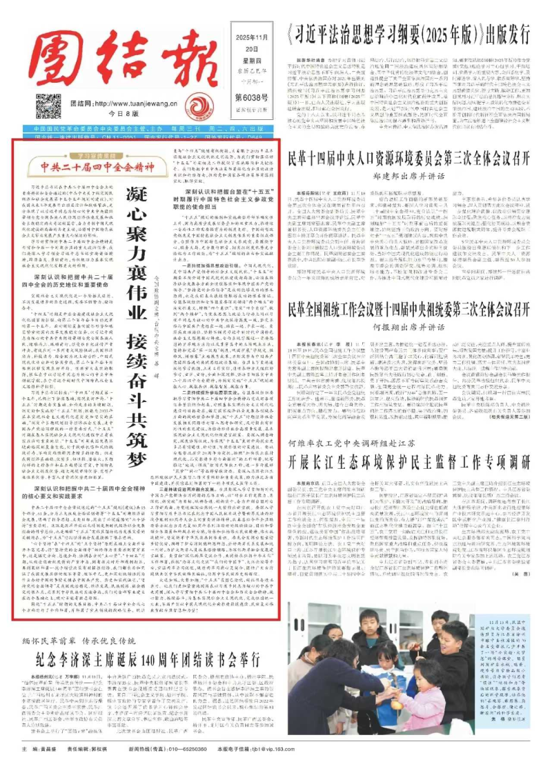 团结报2025年11月20日刊发全国政协副主席、台盟中央主席苏辉的署名文章。