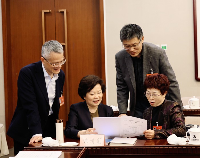 3月10日上午,台盟界别委员召开小组会议,围绕“高质量推进两岸融合发展示范区建设,推动两岸经济合作”讨论。江尔雄、陈清莉、陈子云、吕少军、廖明宏、孔令智发言,江利平主持。