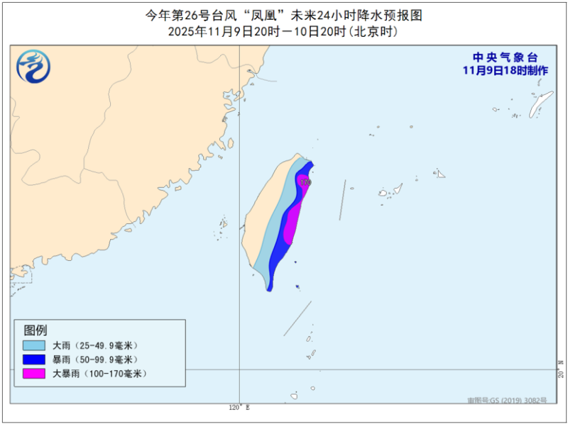 降雨方面,台湾岛东部在上述时段内将出现大到暴雨,部分地区可能有100至170毫米的大暴雨。(编辑/李响)