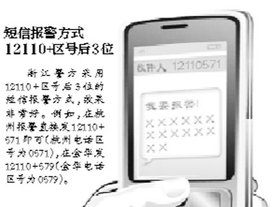 该负责人称,浙江省公安厅在2009年推出12110+本地电话区号后3位的短信报警服务,这可以直接将报警短信发送至所在城市的公安局指挥中心。