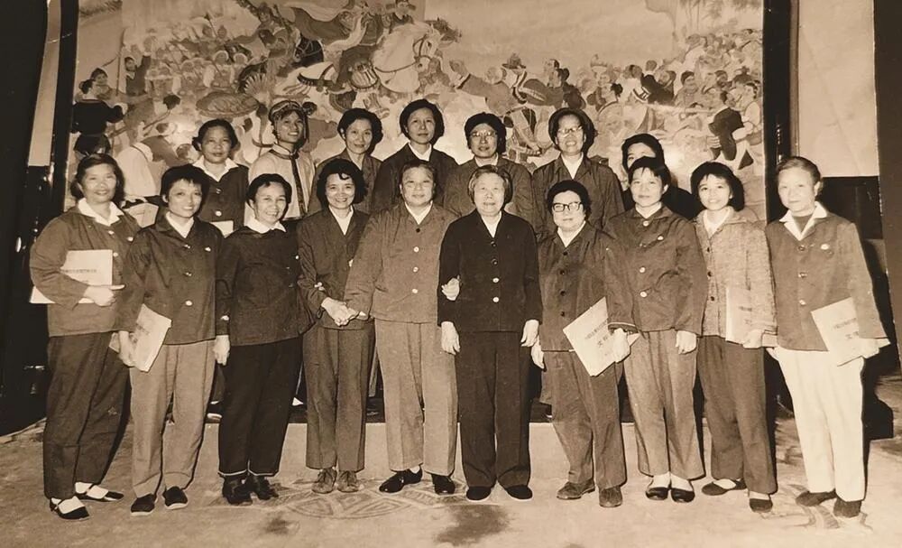 △中国妇女第三次全国代表大会台湾省代表团合影,母亲(后排右二)任副团长,前排中为时任全国妇联副主席邓颖超(前排右五)。